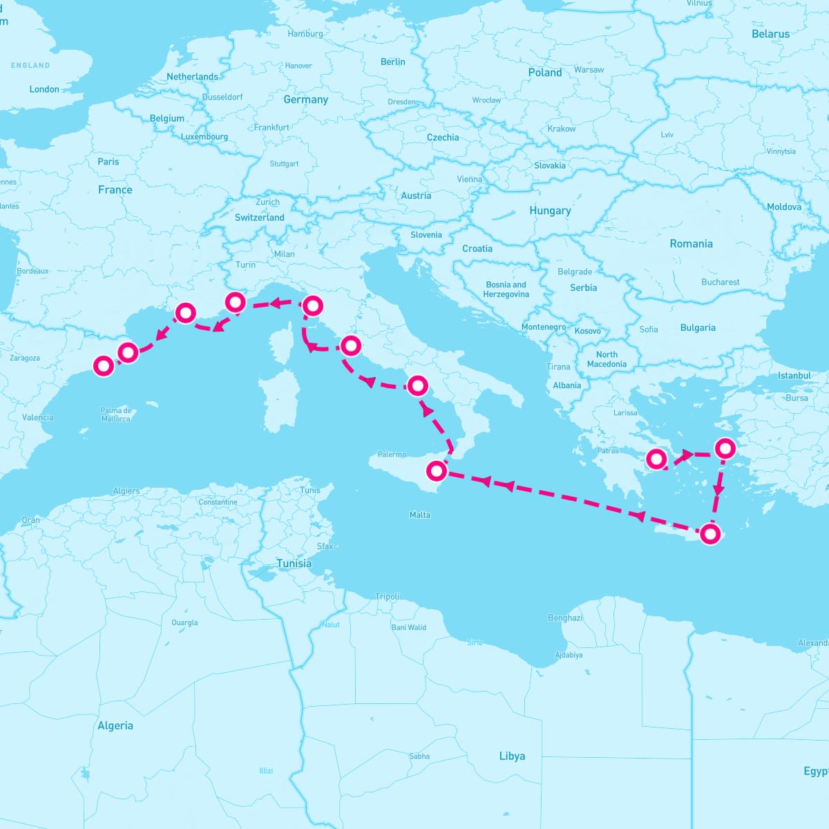 The May 10, 2026 cruise on the Azamara Journey departs from Piraeus (Athens), Greece. On this 11 Night Mediterranean: Greece Italy & France (Athens To Barcelona) sailing, the ship will visit a total of 11 cruise port destinations, including its departure port. The Azamara Journey sets sail on Sunday, May 10th and returns on Thursday, May 21st.