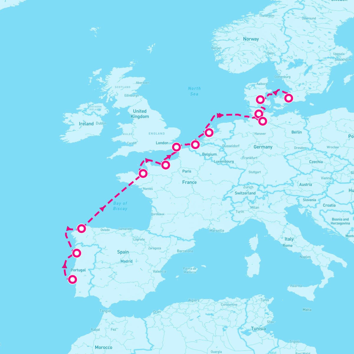 The Azamara Journey sails on June 26, 2026 for a 13 Night Europe: Portugal Belgium & Germany (Lisbon To Copenhagen). The ship will depart the port of Lisbon, Portugal at 6:00 PM and will return to the port of Copenhagen, Denmark on Jul 9th at 7:00 AM. During the 14-day journey, the Azamara Journey will visit 11 additional ports and will spend 1 days at sea.