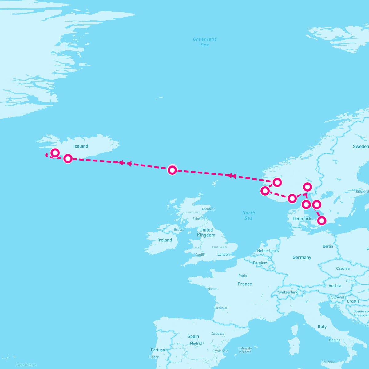 The July 27, 2026 cruise on the Azamara Journey departs from Copenhagen, Denmark. On this 12 Night Scandinavia Norway Iceland & Faroe Islands (Copenhagen To Reykjavik) sailing, the ship will visit a total of 11 cruise port destinations, including its departure port. The Azamara Journey sets sail on Monday, Jul 27th and returns on Saturday, Aug 8th.