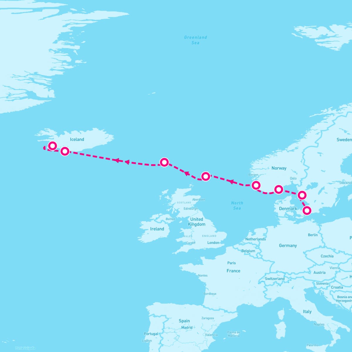 The Azamara Journey sails on July 31, 2026 for a 8 Night Scandinavia: Norway Iceland & Faroe Islands (Copenhagen To Reykjavik). The ship will depart the port of Copenhagen, Denmark at 6:00 PM and will return to the port of Reykjavik, Iceland on Aug 8th at 7:00 AM. During the 9-day journey, the Azamara Journey will visit 7 additional ports and will spend 1 days at sea.