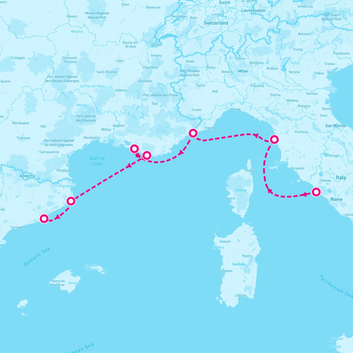 The Azamara Journey sails on May 15, 2027 for a 7 Night Italy France & Spain (Rome To Barcelona). The ship will depart the port of Civitavecchia (Rome), Italy at 6:00 PM and will return to the port of Barcelona, Spain on May 22nd at 6:00 AM. During the 8-day journey, the Azamara Journey will visit 6 additional ports and will spend 0 days at sea.