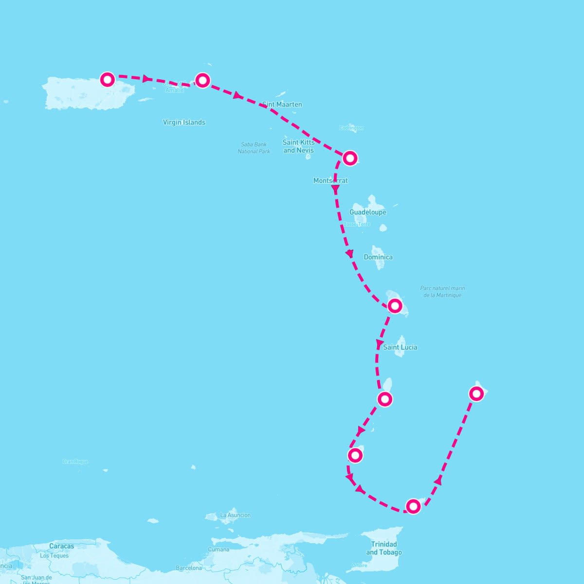 The Azamara Quest sails on December 5, 2027 for a 7 Night Southern Caribbean (San Juan To Bridgetown). The ship will depart the port of San Juan, Puerto Rico at 5:00 PM and will return to the port of Bridgetown, Barbados on Dec 12th at 5:00 AM. During the 8-day journey, the Azamara Quest will visit 7 additional ports and will spend 0 days at sea.