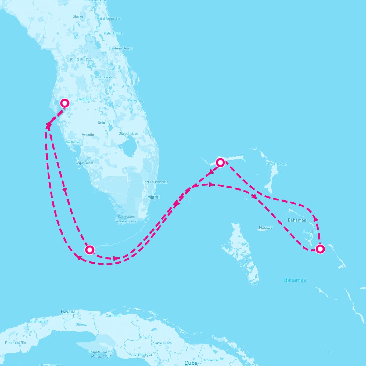 The Carnival Paradise sails on October 27, 2025 for a 6 Night Bahamas (Tampa Roundtrip). The ship will depart the port of Tampa, Florida at 3:30 PM and will return to the port of Tampa, Florida on Nov 2nd at 6:00 AM. During the 7-day journey, the Carnival Paradise will visit 3 additional ports and will spend 2 days at sea.