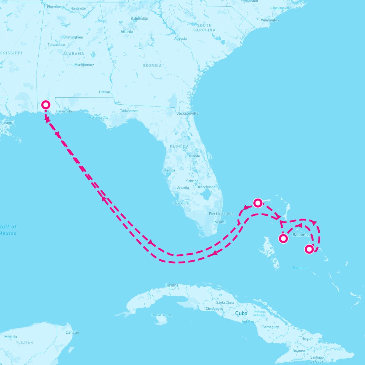 The December 28, 2025 cruise on the Carnival Spirit departs from Mobile, Alabama. On this 8 Night Bahamas (Mobile Roundtrip) sailing, the ship will visit a total of 4 cruise port destinations, including its departure port. The Carnival Spirit sets sail on Sunday, Dec 28th and returns on Monday, Jan 5th.