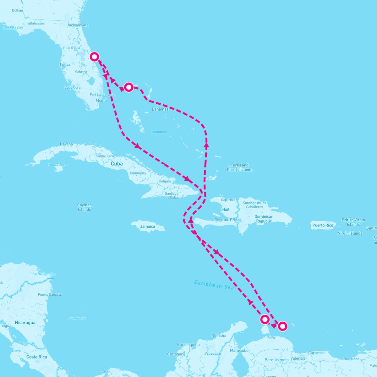 The Carnival Vista sails on June 13, 2026 for a 8 Night Southern Caribbean (Port Canaveral Roundtrip). The ship will depart the port of Port Canaveral, Florida at 3:30 PM and will return to the port of Port Canaveral, Florida on Jun 21st at 8:00 AM. During the 9-day journey, the Carnival Vista will visit 3 additional ports and will spend 4 days at sea.