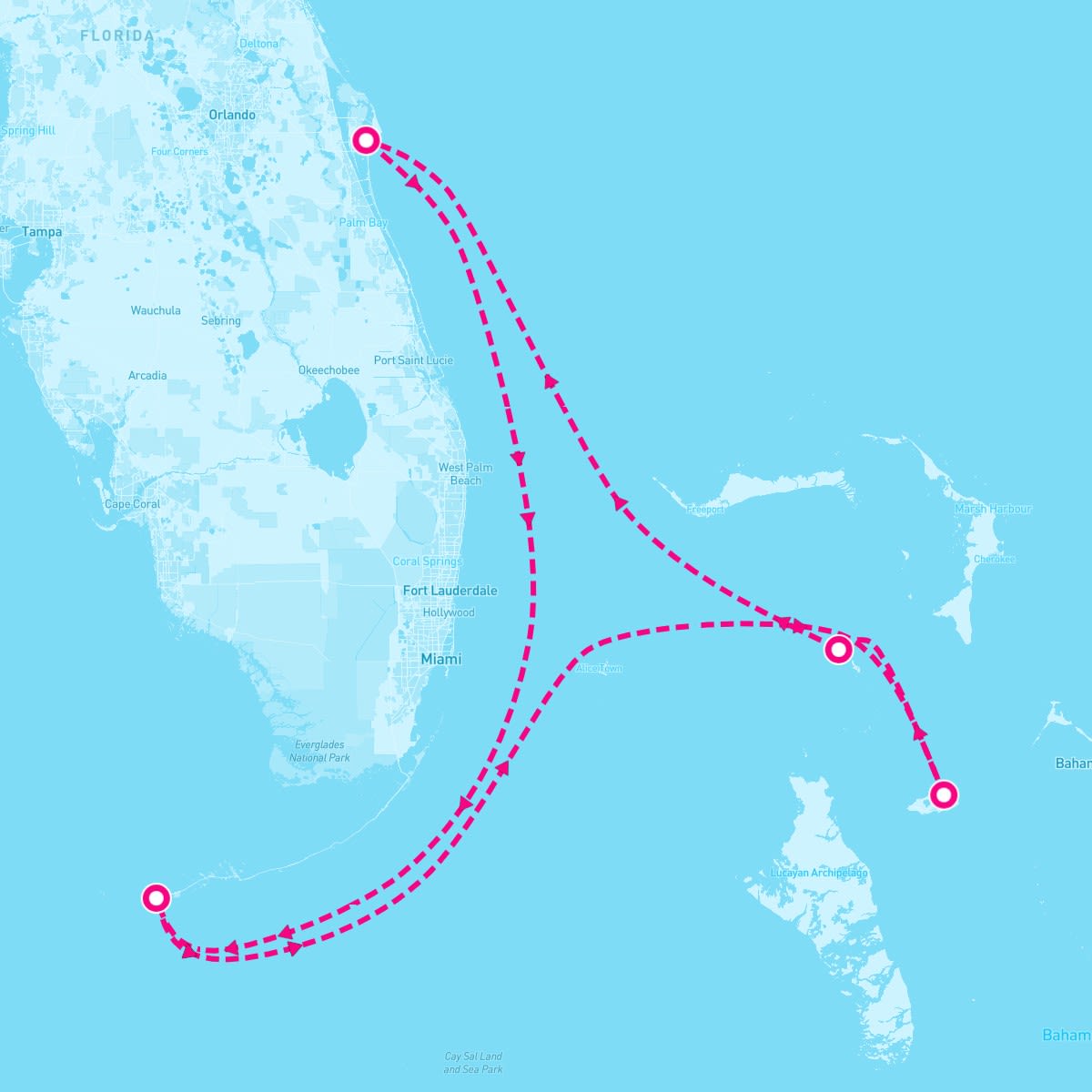 This route includes port-canaveral-florida, key-west-florida, nassau-bahamas, perfect-day-at-coco-cay-bahamas.
