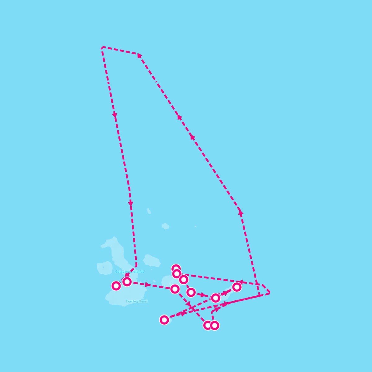 This route includes baltra-galapagos, north-seymour-galapagos, south-plaza-santa-cruz-galapagos, santa-fe-island-galapagos, puerto-baquerizo-san-cristobal-galapagos, punta-pitt-san-cristobal-galapagos, cormorant-point-floreana-galapagos, bahia-post-office-floreana-galapagos, punta-moreno-isabela-galapagos, elizabeth-bay-galapagos, puerto-ayora-santa-cruz-galapagos, punta-suarez-espanola-galapagos, gardner-bay-espanola-galapagos.