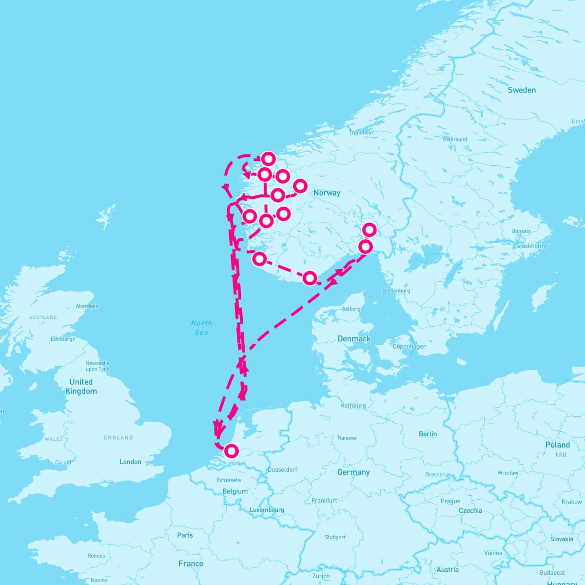 The May 23, 2027 cruise on the MS Rotterdam departs from Rotterdam, Netherlands. On this 14 Night Norwegian Fjords & Sognefjord With History Channel (Rotterdam Roundtrip) sailing, the ship will visit a total of 13 cruise port destinations, including its departure port. The MS Rotterdam sets sail on Sunday, May 23rd and returns on Sunday, Jun 6th.