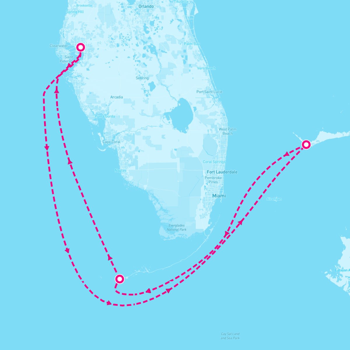 This route includes tampa-florida, freeport-bahamas, key-west-florida.