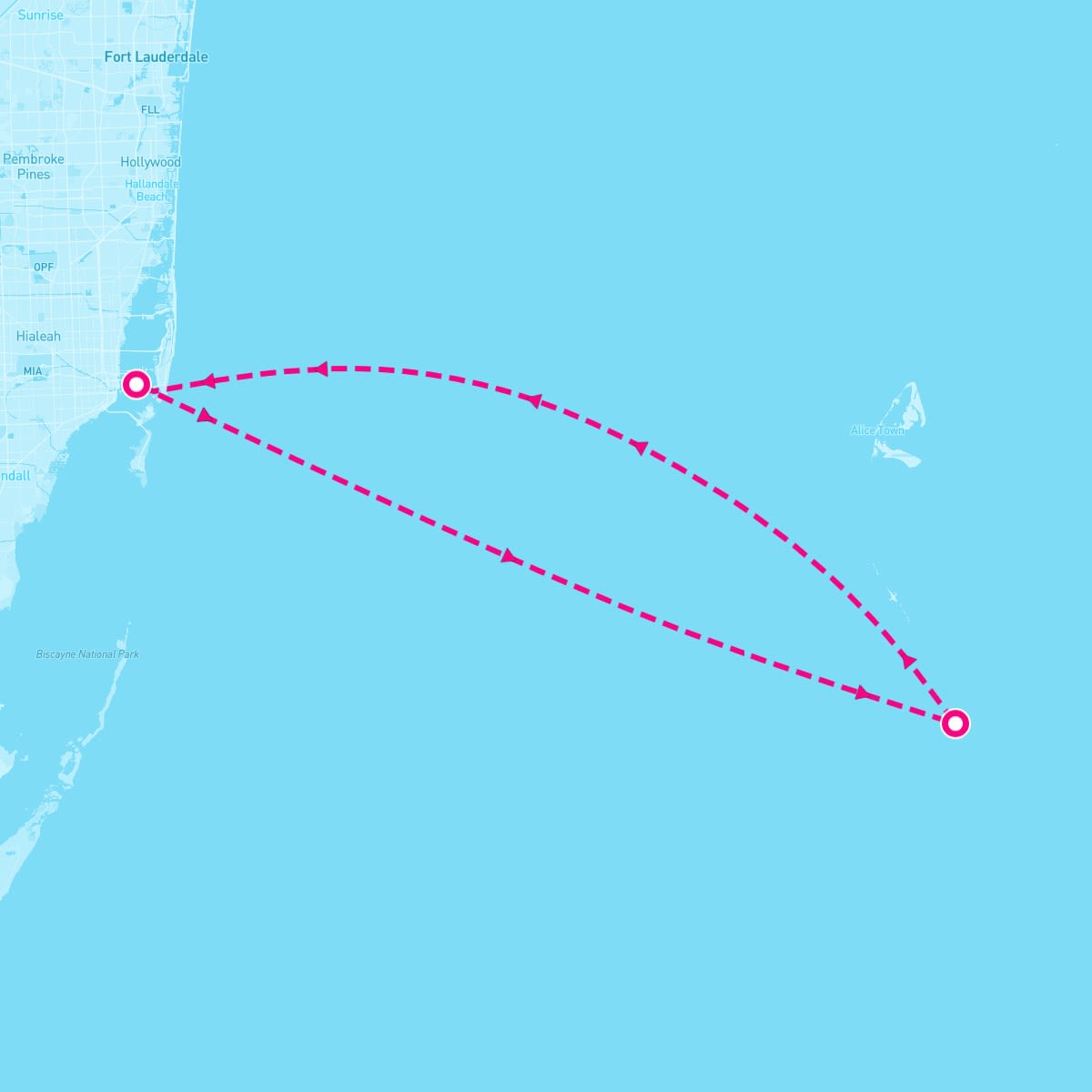 This route includes miami-florida, ocean-cay-msc-marine-reserve-bahamas.
