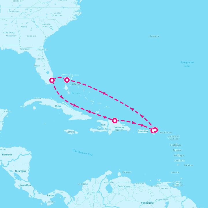 The January 10, 2027 cruise on the Norwegian Aqua departs from Miami, Florida. On this 7 Night Caribbean: Great Stirrup Cay & Dominican Republic (Miami Roundtrip) sailing, the ship will visit a total of 5 cruise port destinations, including its departure port. The Norwegian Aqua sets sail on Sunday, Jan 10th and returns on Sunday, Jan 17th.