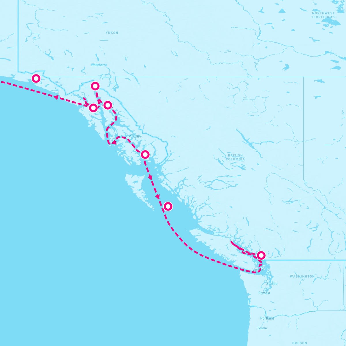 This route includes vancouver-british-columbia, cruise-inside-passage-alaska, ketchikan-alaska, juneau-alaska, skagway-alaska, icy-strait-point-alaska, cruise-hubbard-glacier, whittier-anchorage-alaska.