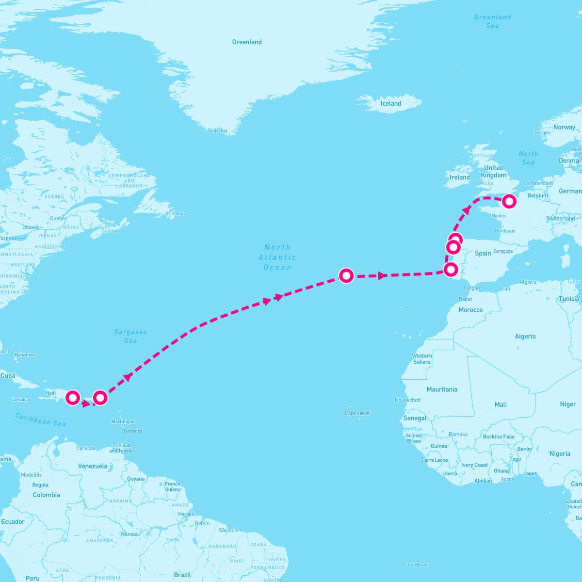 The Norwegian Sky sails on April 6, 2026 for a 13 Night Transatlantic: Spain & Portugal (La Romana To Le Havre). The ship will depart the port of La Romana, Dominican Republic at 4:00 PM and will return to the port of Le Havre (Paris), France on Apr 19th at 5:30 AM. During the 14-day journey, the Norwegian Sky will visit 6 additional ports and will spend 7 days at sea.