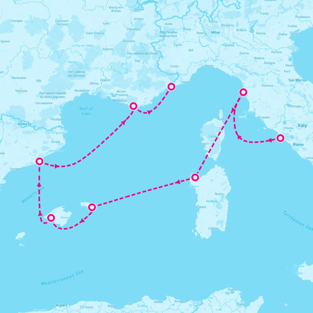 The Nautica sails on October 12, 2026 for a 7 Night Balearic & Riviera Resorts (Rome To Monte Carlo). The ship will depart the port of Civitavecchia (Rome), Italy at 5:00 PM and will return to the port of Monte Carlo, Monaco on Oct 19th at 8:00 AM. During the 8-day journey, the Nautica will visit 7 additional ports and will spend 0 days at sea.