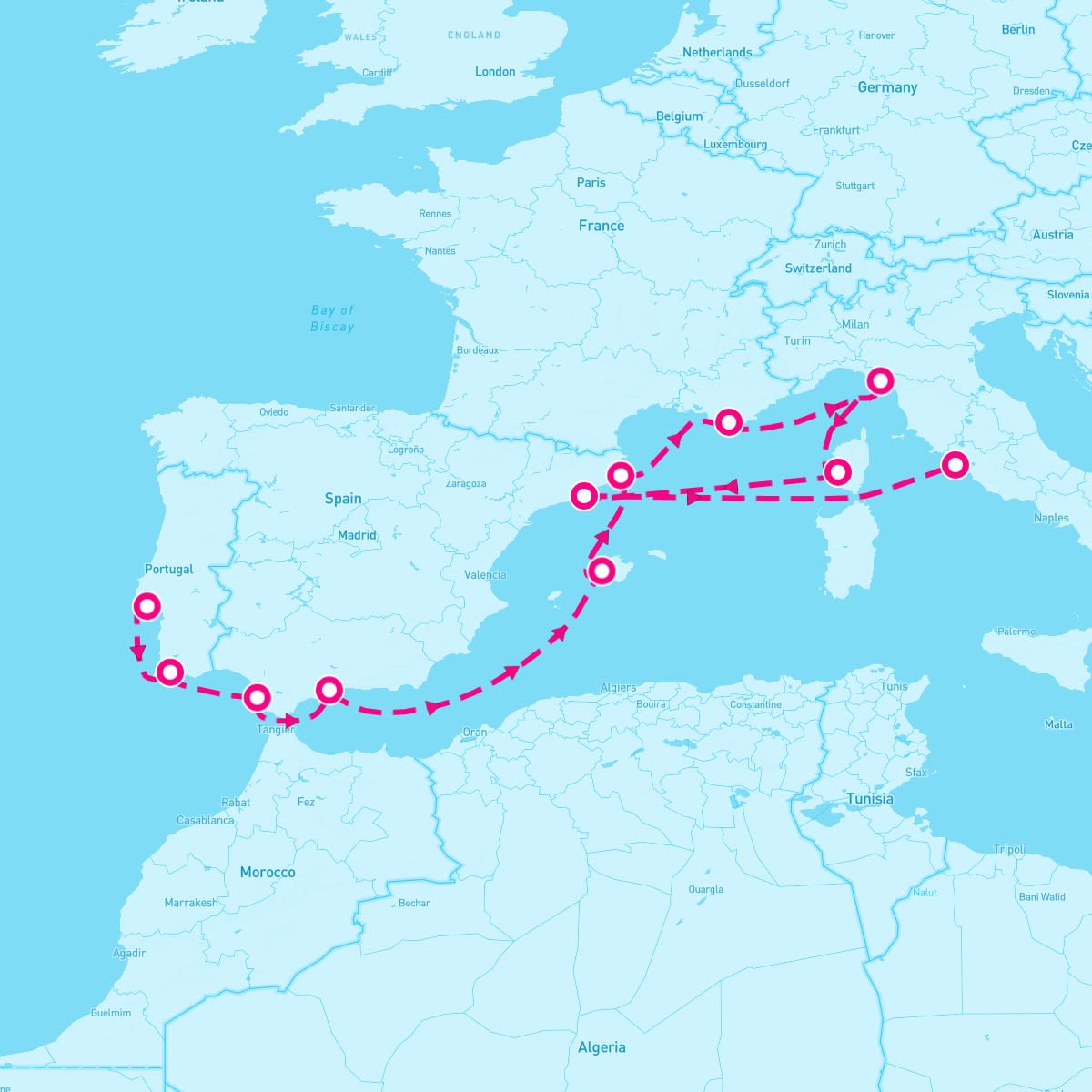 The December 21, 2026 cruise on the Nautica departs from Lisbon, Portugal. On this 14 Night Iberia & Italian Treasures (Lisbon To Rome) sailing, the ship will visit a total of 11 cruise port destinations, including its departure port. The Nautica sets sail on Monday, Dec 21st and returns on Monday, Jan 4th.
