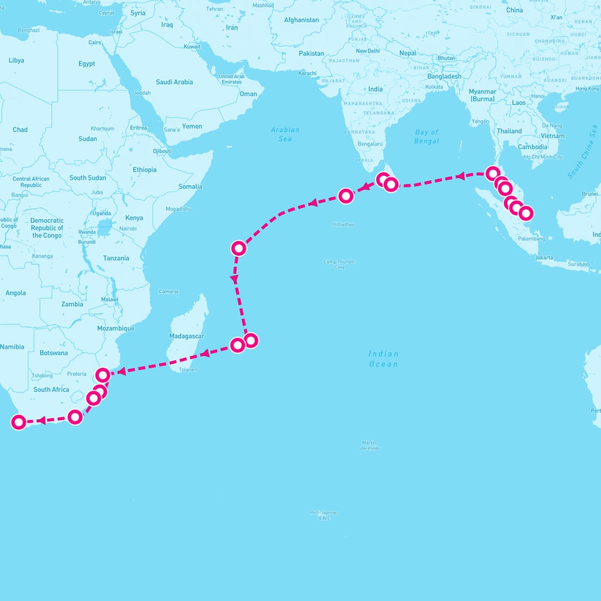 The Regatta sails on May 1, 2026 for a 30 Night Asian & African Mariner (Singapore To Cape Town). The ship will depart the port of Singapore at 5:00 PM and will return to the port of Cape Town, South Africa on May 31st at N/A. During the 31-day journey, the Regatta will visit 16 additional ports and will spend 12 days at sea.
