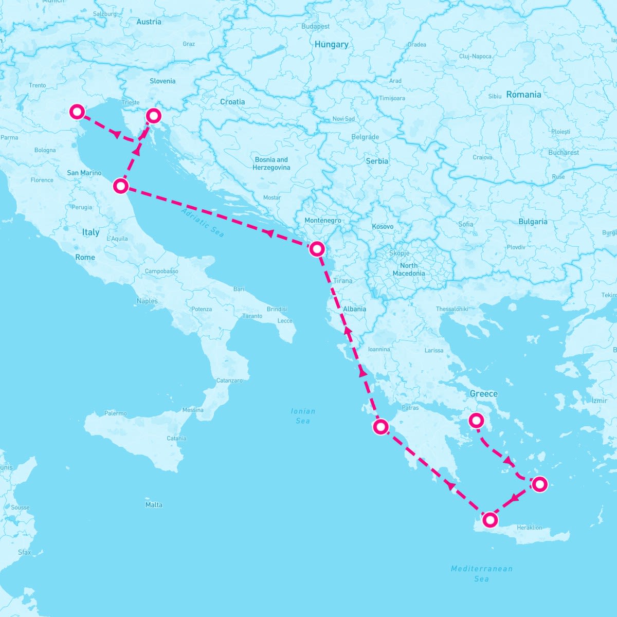 The Sirena sails on May 26, 2026 for a 7 Night Route Of The Doges (Athens To Venice). The ship will depart the port of Piraeus (Athens), Greece at 6:00 PM and will return to the port of Venice, Italy on Jun 2nd at 8:00 AM. During the 8-day journey, the Sirena will visit 7 additional ports and will spend 0 days at sea.