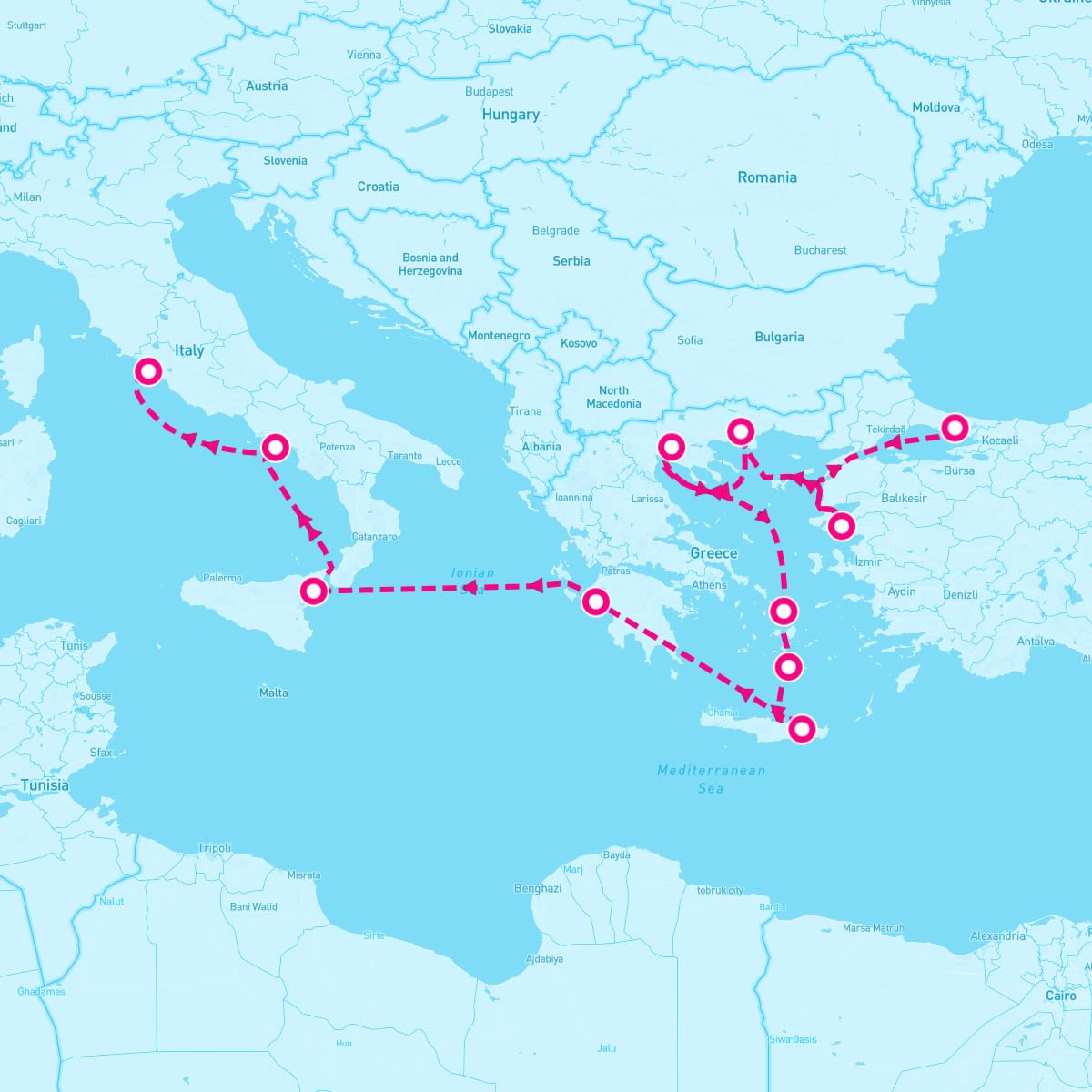The July 9, 2027 cruise on the Sirena departs from Istanbul, Turkey. On this 10 Night Iconic Greek Isles (Istanbul To Rome) sailing, the ship will visit a total of 11 cruise port destinations, including its departure port. The Sirena sets sail on Friday, Jul 9th and returns on Monday, Jul 19th.
