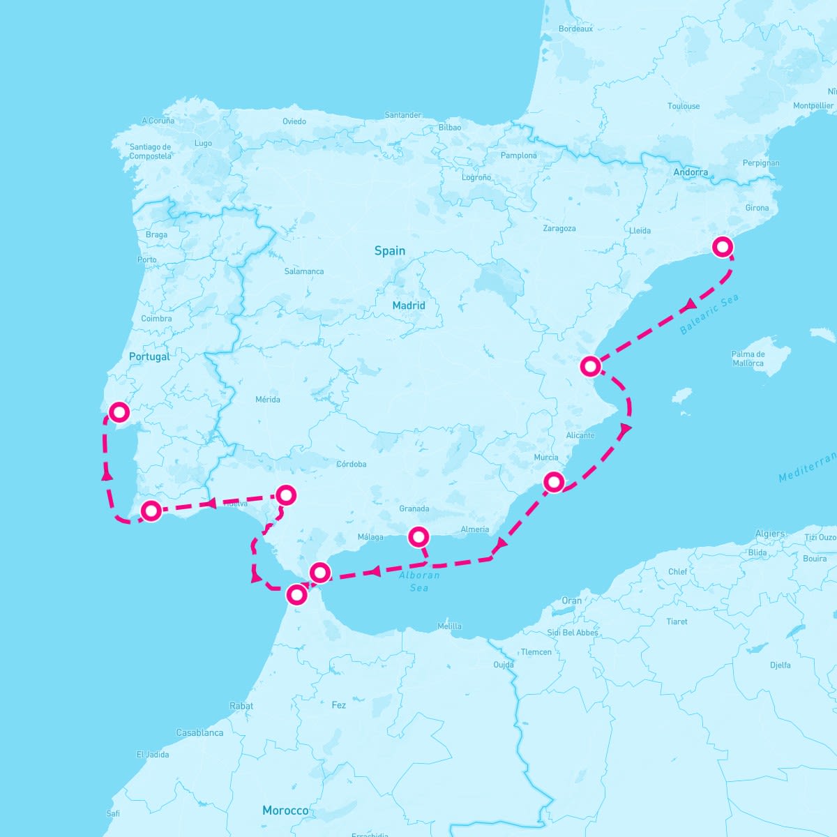 The Sirena sails on August 16, 2027 for a 9 Night Ferdinands Fantasy (Barcelona To Lisbon). The ship will depart the port of Barcelona, Spain at 5:00 PM and will return to the port of Lisbon, Portugal on Aug 25th at 8:00 AM. During the 10-day journey, the Sirena will visit 8 additional ports and will spend 0 days at sea.