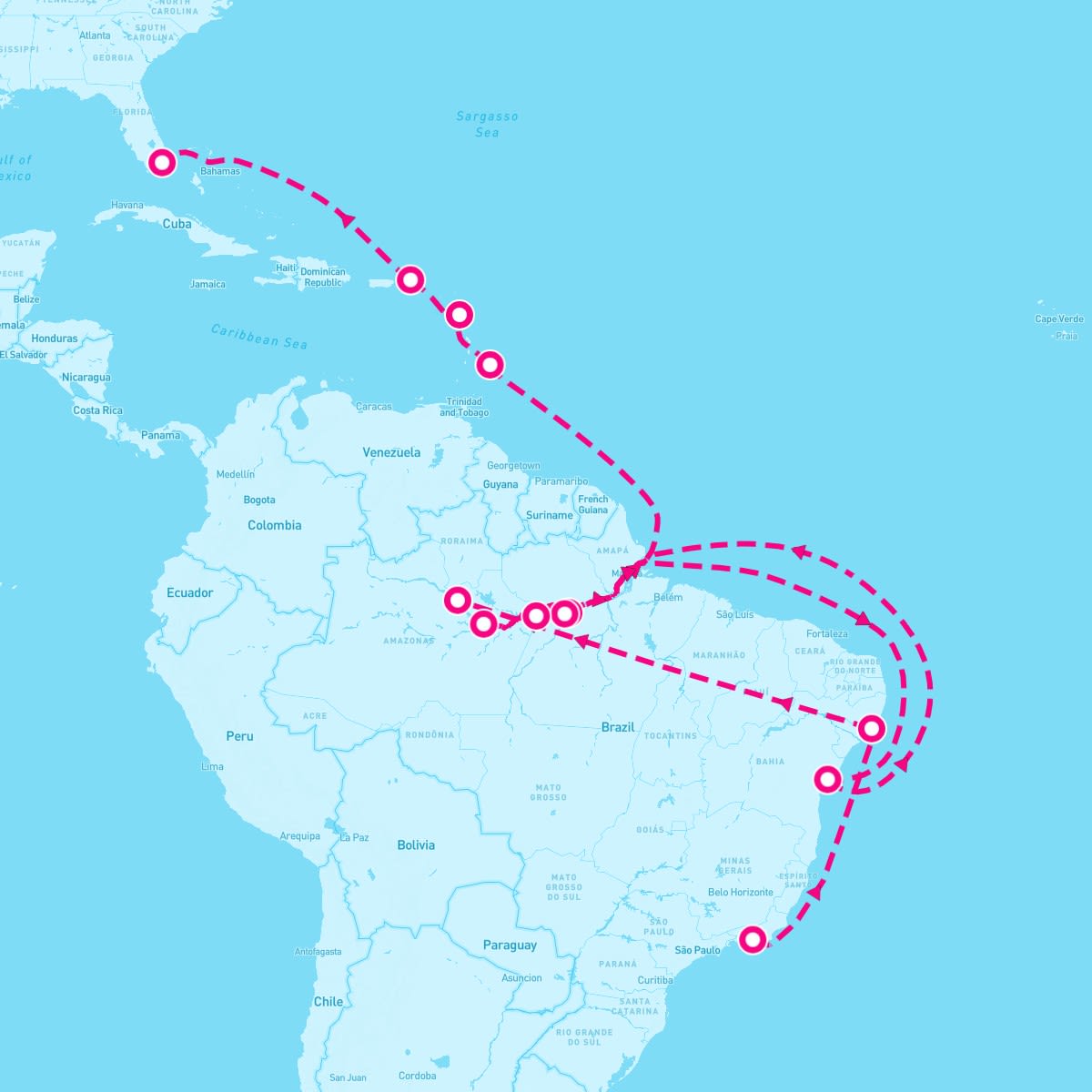 The Sirena sails on February 18, 2028 for a 21 Night Amazonian Exploration (Rio De Janeiro To Miami). The ship will depart the port of Rio De Janeiro, Brazil at 4:00 PM and will return to the port of Miami, Florida on Mar 10th at 7:00 AM. During the 22-day journey, the Sirena will visit 11 additional ports and will spend 10 days at sea.