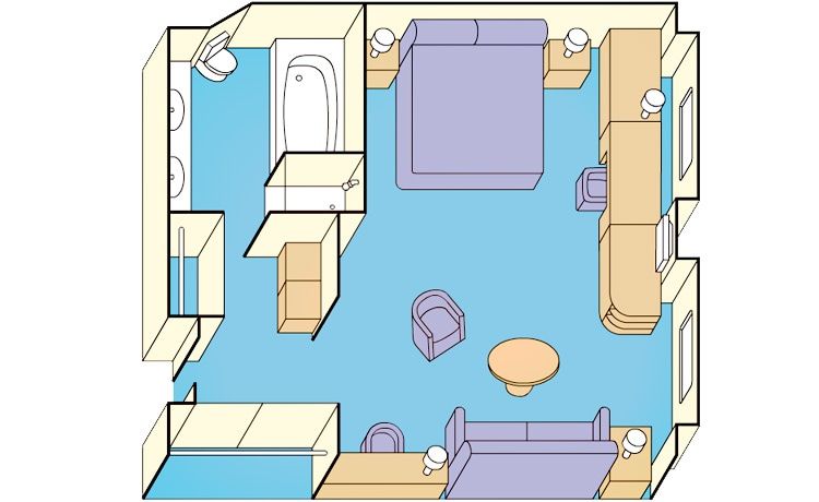 Experience ultimate luxury in the Window Suite category with code S7 from Princess Cruises. These spacious cabins offer a minimum of 319 square feet and a maximum of 341 square feet, making them perfect for a comfortable and indulgent vacation. Enjoy the stunning views through the two floor-to-ceiling sliding glass doors and relax in the separate sitting area complete with a sofa bed, chair, and two tables. Other features include luxury balcony furniture, complimentary specialty dining on embarkation evening, and a fully stocked mini-bar with daily bottled water. Stay organized with a spacious closet and take advantage of the complimentary laundry and professional cleaning services. The comfortable queen or two twin beds, two flat-panel televisions, and private bathroom with tub and separate shower provide all the comforts of home. With priority reservations for specialty dining and shore excursions, as well as priority disembarkation at tender ports, you'll experience the best of Princess Cruises in the Window Suite category.