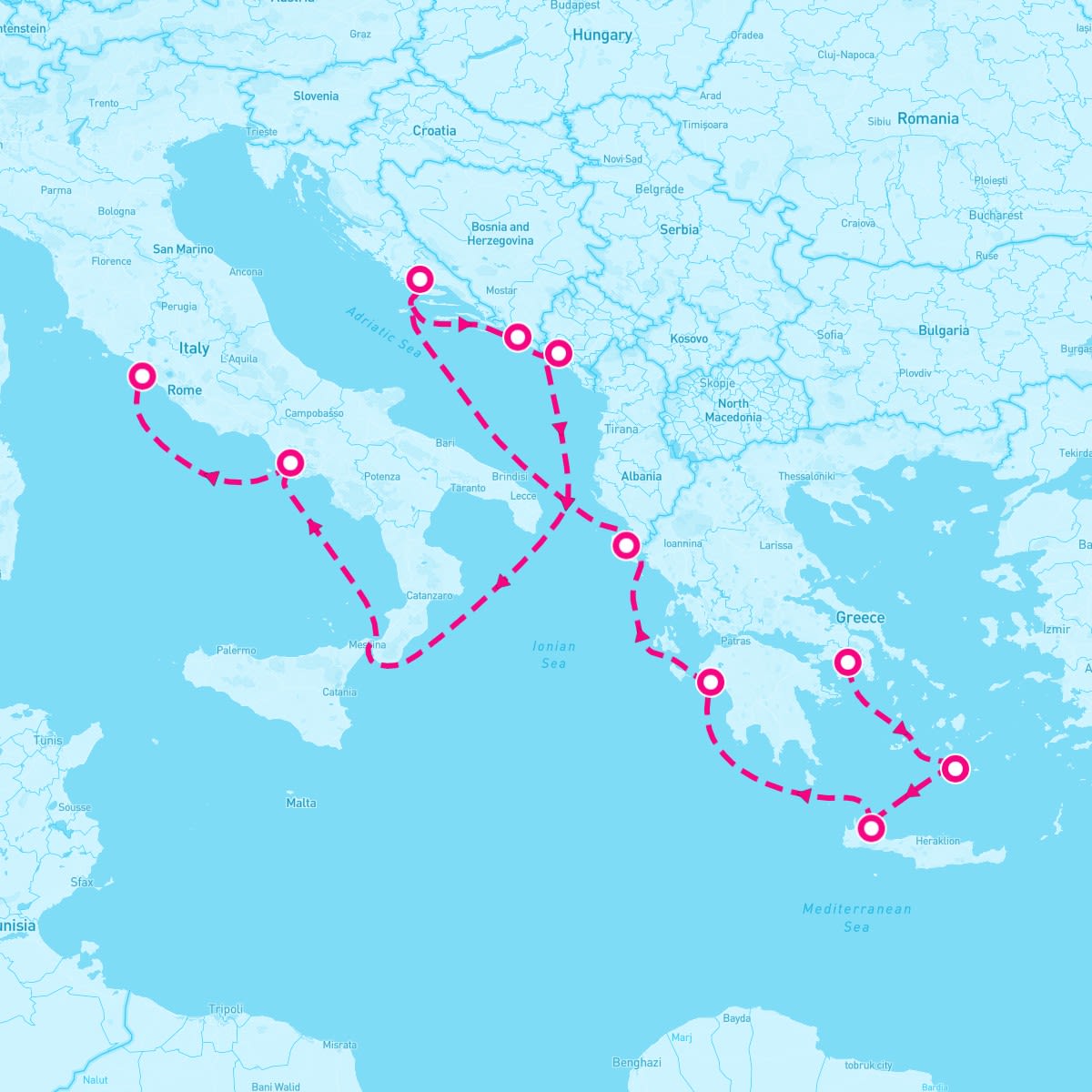 The Enchanted Princess sails on October 31, 2026 for a 10 Night Adriatic & Aegean (Athens To Rome). The ship will depart the port of Piraeus (Athens), Greece at 7:00 PM and will return to the port of Civitavecchia (Rome), Italy on Nov 10th at 5:00 AM. During the 11-day journey, the Enchanted Princess will visit 9 additional ports and will spend 1 days at sea.