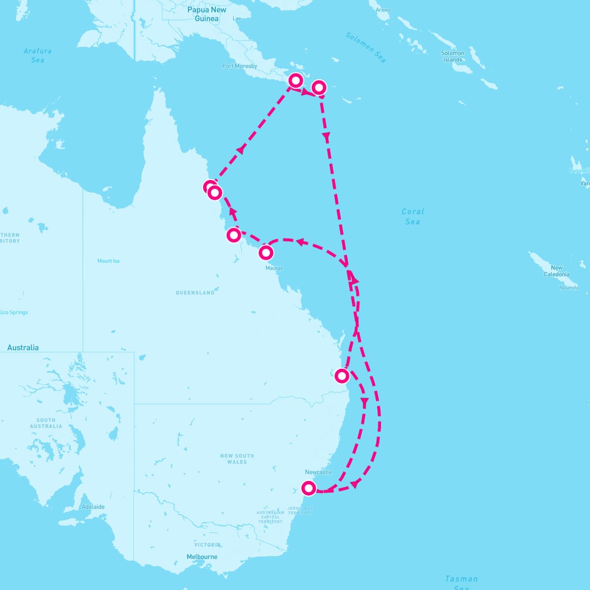 The June 1, 2027 cruise on the Grand Princess departs from Brisbane, Australia. On this 14 Night Papua New Guinea (Brisbane Roundtrip) sailing, the ship will visit a total of 8 cruise port destinations, including its departure port. The Grand Princess sets sail on Tuesday, Jun 1st and returns on Tuesday, Jun 15th.