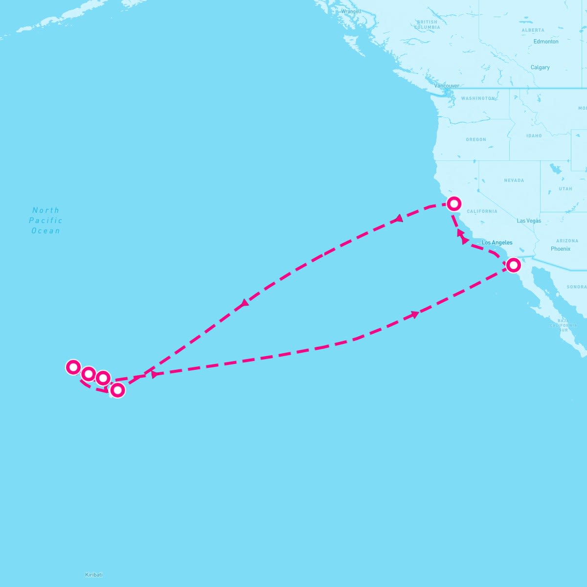 The Ruby Princess sails on March 16, 2027 for a 16 Night Hawaiian Islands (San Francisco Roundtrip). The ship will depart the port of San Francisco, California at 3:00 PM and will return to the port of San Francisco, California on Apr 1st at 7:00 AM. During the 17-day journey, the Ruby Princess will visit 5 additional ports and will spend 10 days at sea.