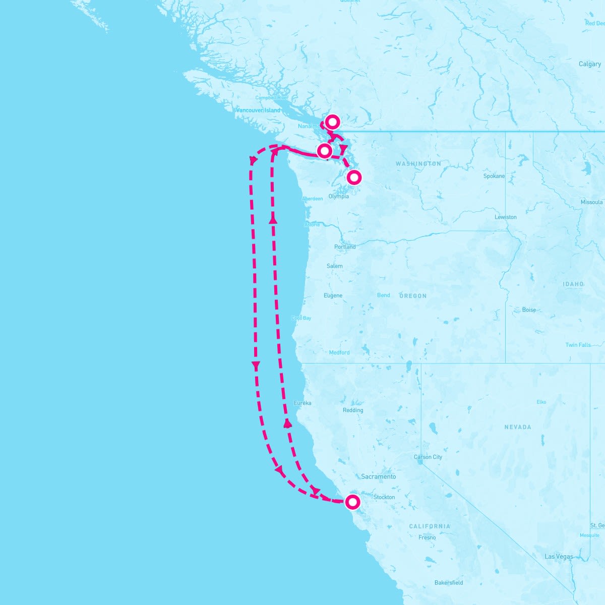 The Ruby Princess sails on April 24, 2027 for a 7 Night Pacific Northwest Coast (San Francisco Roundtrip). The ship will depart the port of San Francisco, California at 3:00 PM and will return to the port of San Francisco, California on May 1st at 7:00 AM. During the 8-day journey, the Ruby Princess will visit 3 additional ports and will spend 3 days at sea.