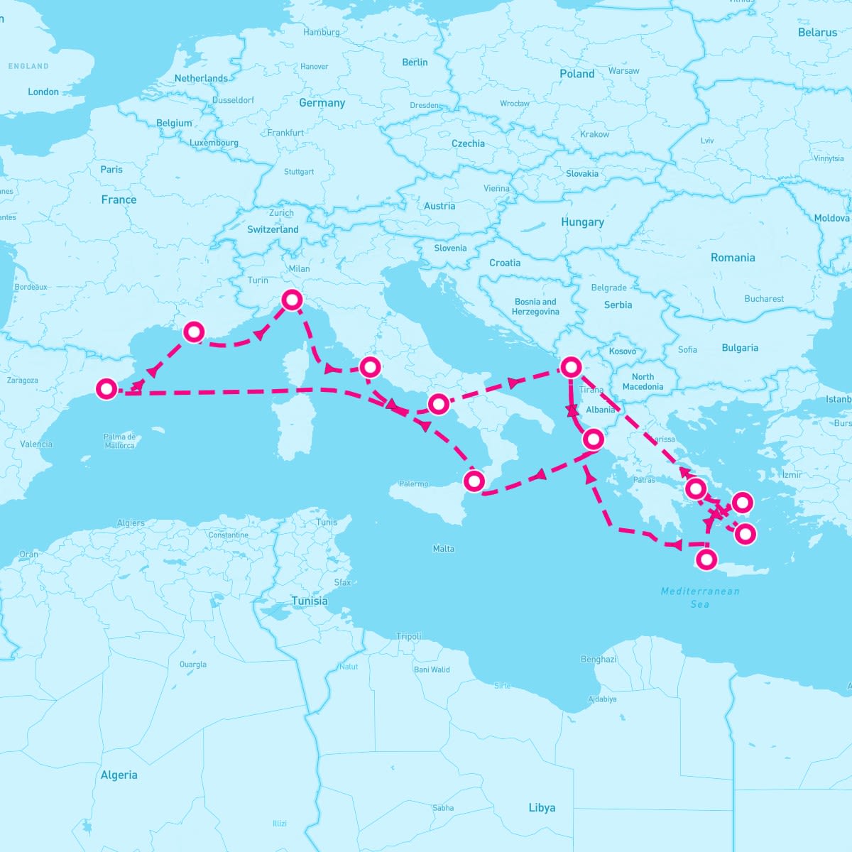 The Sun Princess sails on June 6, 2027 for a 18 Night The Best Of The Mediterranean (Athens Roundtrip). The ship will depart the port of Piraeus (Athens), Greece at 7:00 PM and will return to the port of Piraeus (Athens), Greece on Jun 24th at 6:00 AM. During the 19-day journey, the Sun Princess will visit 11 additional ports and will spend 4 days at sea.