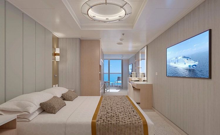 The Mini-Suite category (MA) on Princess Cruises offers a comfortable and stylish option for travelers. With 393 square feet of space divided into a separate sitting area with a sofa bed and coffee table, guests can relax and unwind during their stay. The cabin also includes a flat-panel television, a desk with a chair, and a spacious closet for storage. The balcony with 2-4 chairs, a table, and an ottoman provides a scenic and private spot to enjoy the ocean views. The private bathroom features a shower, hair dryer, and luxurious bathroom amenities. Comfortable queen or twin beds with luxury mattress toppers and pillows ensure a good night's sleep. With 24-hour room service, a digital security safe, and high-quality linens, the Mini-Suite category is sure to exceed guests' expectations.