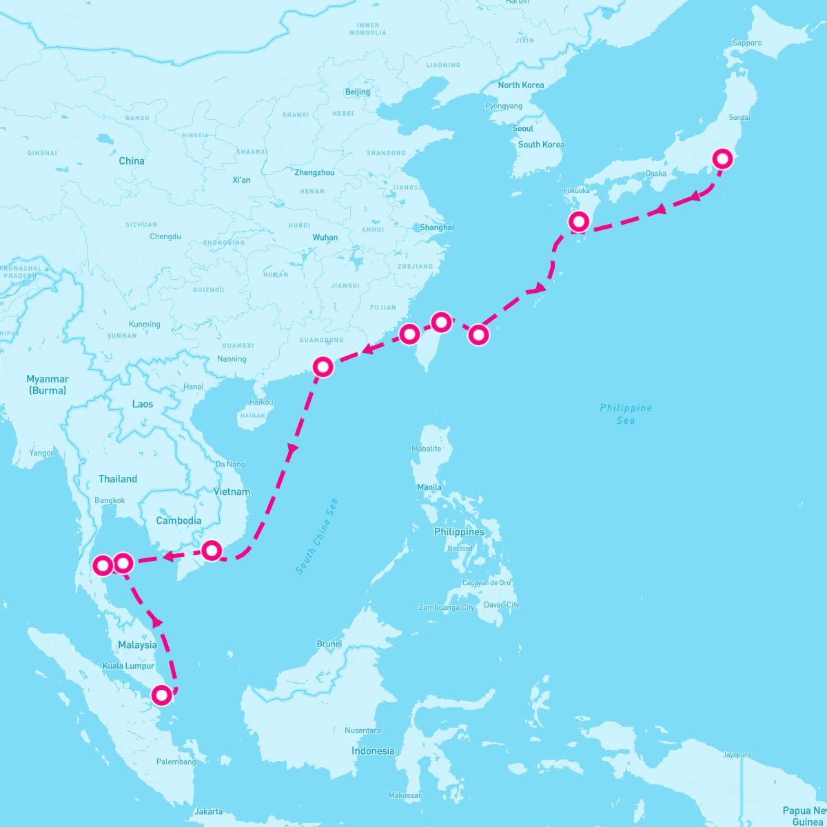 The Taiwan Strait, with no docking, sees ships sailing between Taiwan and mainland China. Travelers observe Chinese white dolphins leaping in busy waters. Lectures onboard cover cross-strait political history. No facilities exist; provisions are ship-based. The peak season, November to April, avoids typhoons. Photography captures Penghu’s basalt islands. Dining onboard includes beef noodle soup. Souvenirs, like oolong tea, are available in ship shops. Briefings discuss ocean currents. Light clothing suits the warm climate. The strait’s strategic waters connect East Asia’s dynamic ports.