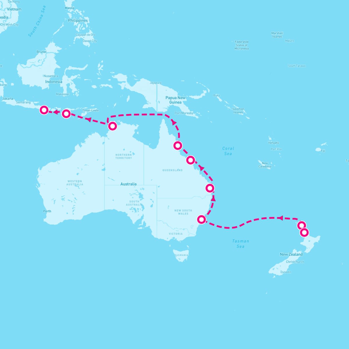 The Seven Seas Mariner sails on March 6, 2026 for a 18 Night Kiwi Charm & Aussie Delights (Auckland To Bali). The ship will depart the port of Auckland, New Zealand at 6:00 PM and will return to the port of Benoa, Bali, Indonesia on Mar 24th at N/A. During the 19-day journey, the Seven Seas Mariner will visit 8 additional ports and will spend 7 days at sea.