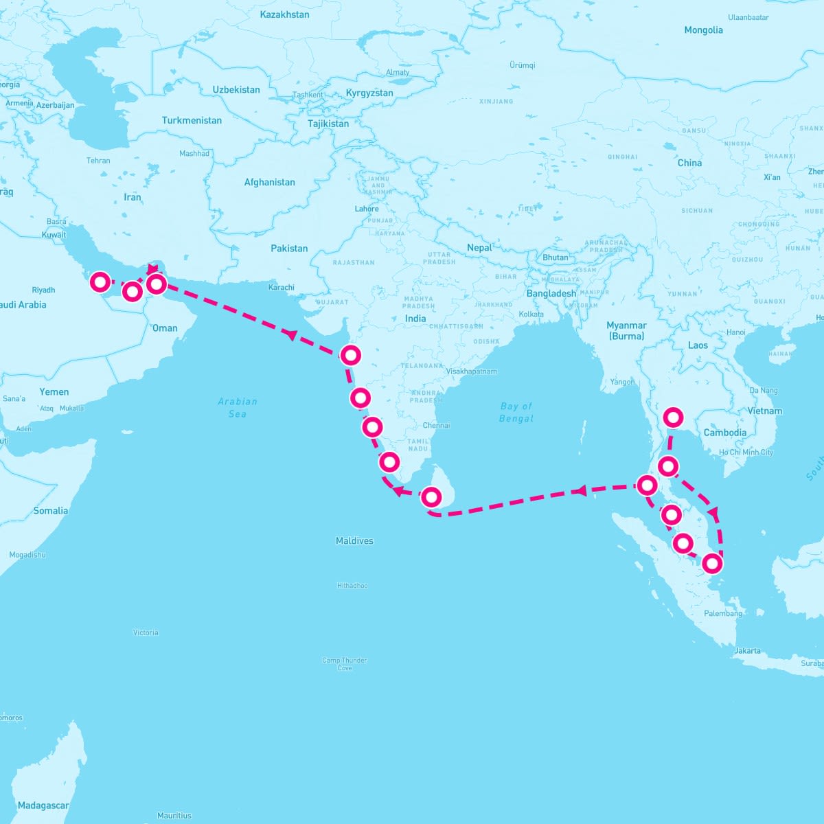 Mumbai, India, offers docking at Mumbai Port. Travelers explore the Gateway of India and Elephanta Caves, a UNESCO site. Excursions visit Bollywood studios or Colaba’s markets. Local markets sell pav bhaji. The peak season, November to March, brings mild weather for city tours. Photography captures colonial architecture and Arabian Sea views. Dining onboard includes vada pav, a Mumbai favorite. Souvenirs, like bangles, are sold in ship shops. Briefings cover Mumbai’s trade history. Light clothing and sun protection suit the tropical climate, while comfortable shoes enhance market walks. Mumbai’s vibrant urban energy and cultural richness offer a dynamic Indian stop. Cruise travelers enjoy a mix of historic landmarks, bustling markets, and Bollywood flair, making Mumbai an engaging destination for exploring India’s cosmopolitan heart and coastal heritage.
