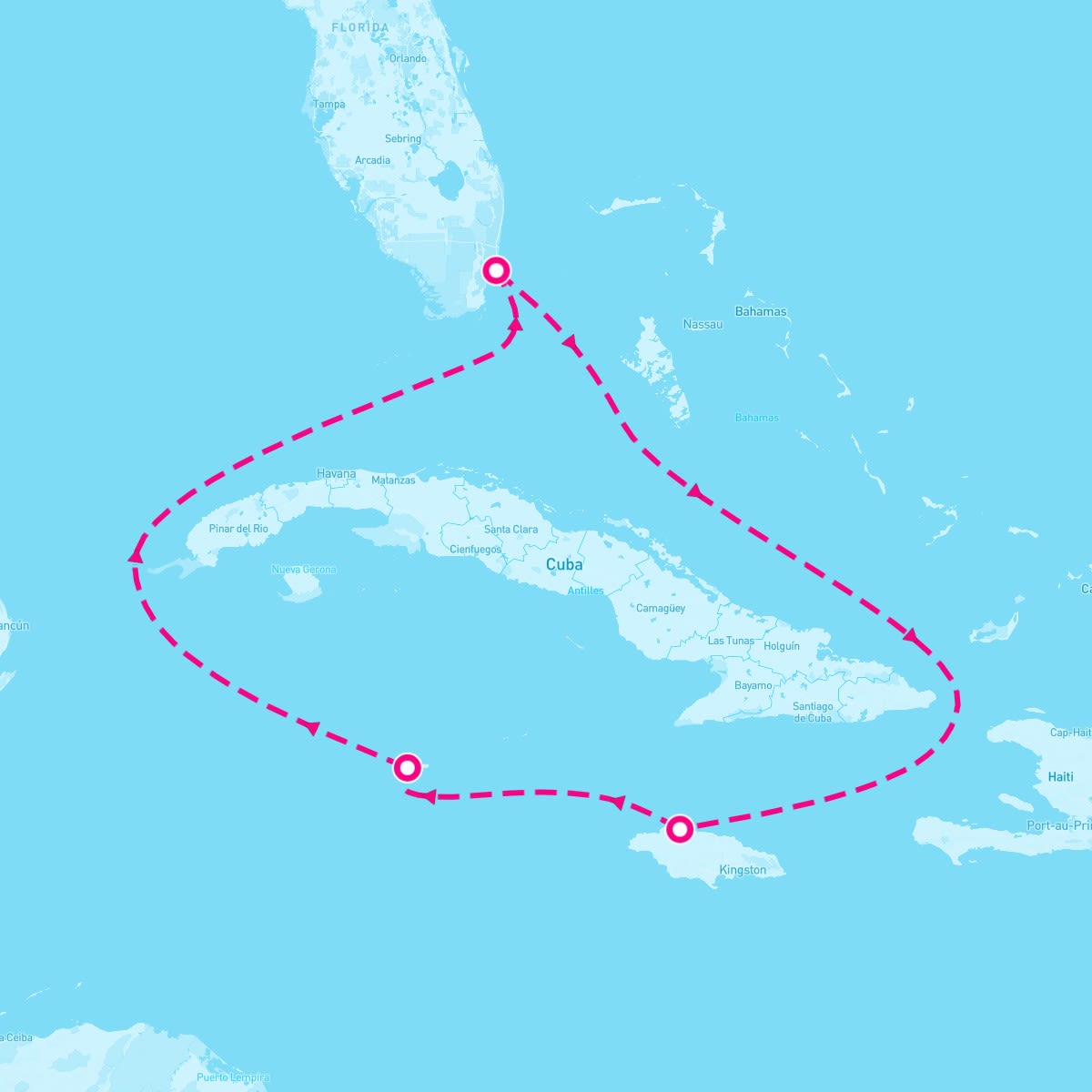 This route includes miami-florida, falmouth-jamaica, george-town-grand-cayman.
