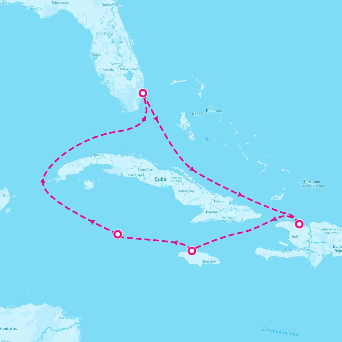 This route includes fort-lauderdale-florida, labadee-cruiseline-private-island, falmouth-jamaica, george-town-grand-cayman.