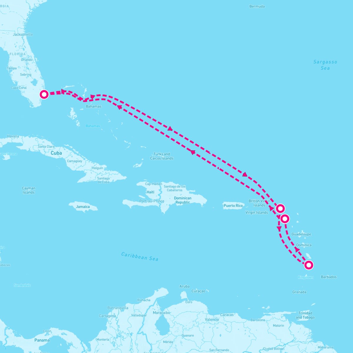 This route includes fort-lauderdale-florida, philipsburg-st-maarten, castries-st-lucia, basseterre-st-kitts.
