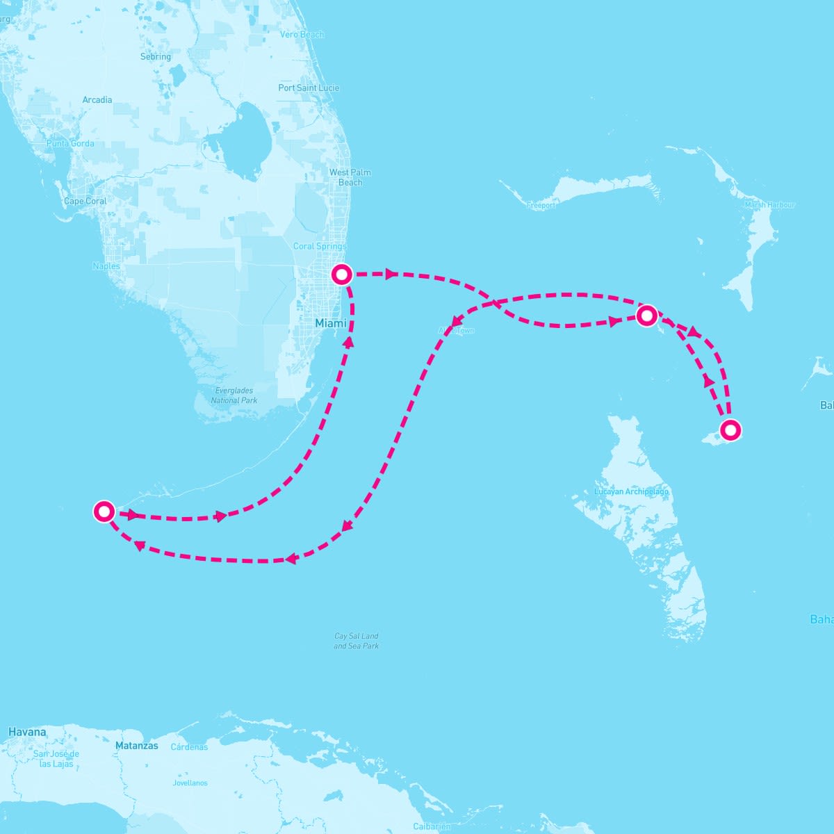 Cruise Itinerary Map - 4 Night Key West & Perfect Day (Ft. Lauderdale Roundtrip)
