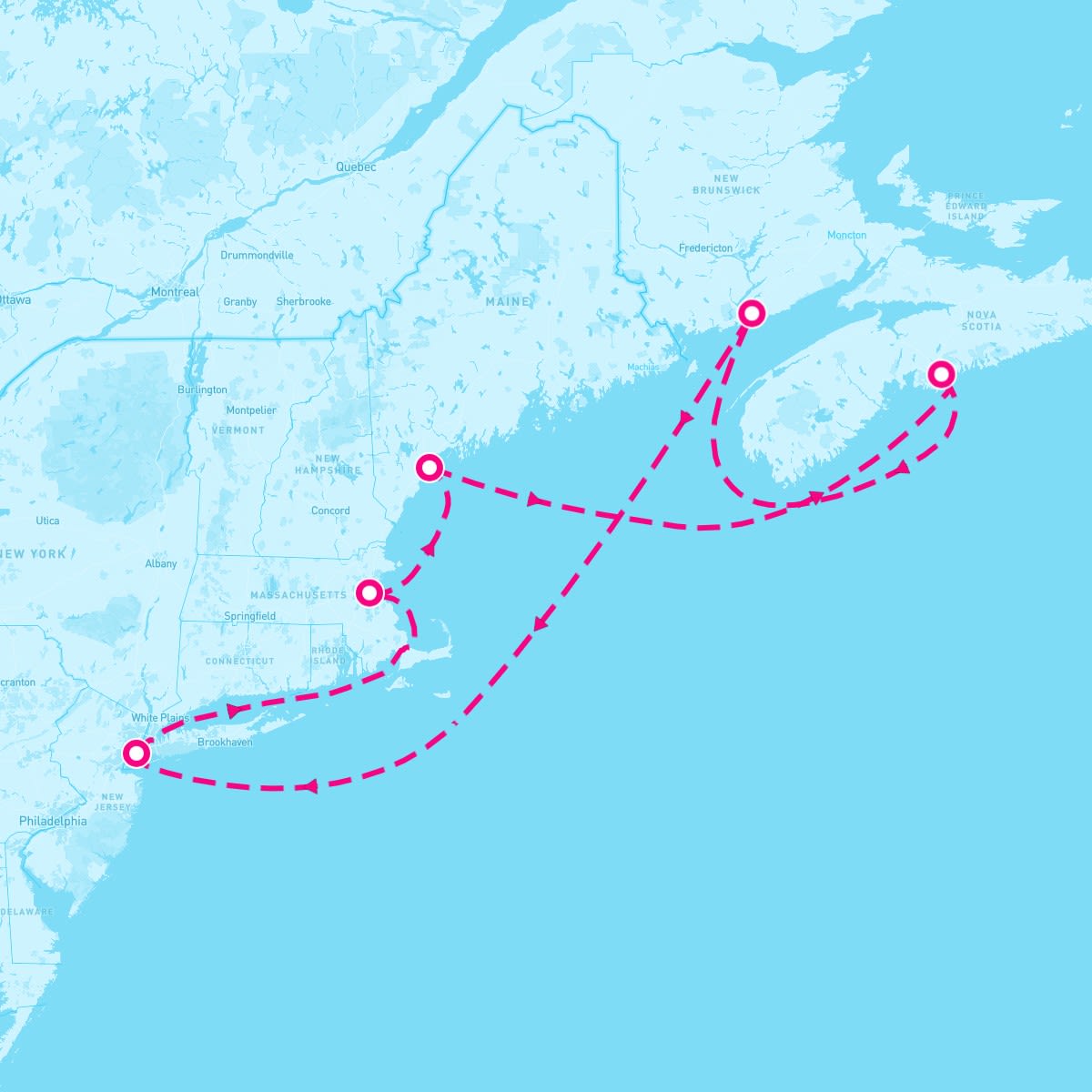 This route includes cape-liberty-bayonne-new-jersey, boston-massachusetts, portland-maine, halifax-nova-scotia, st-john-new-brunswick.