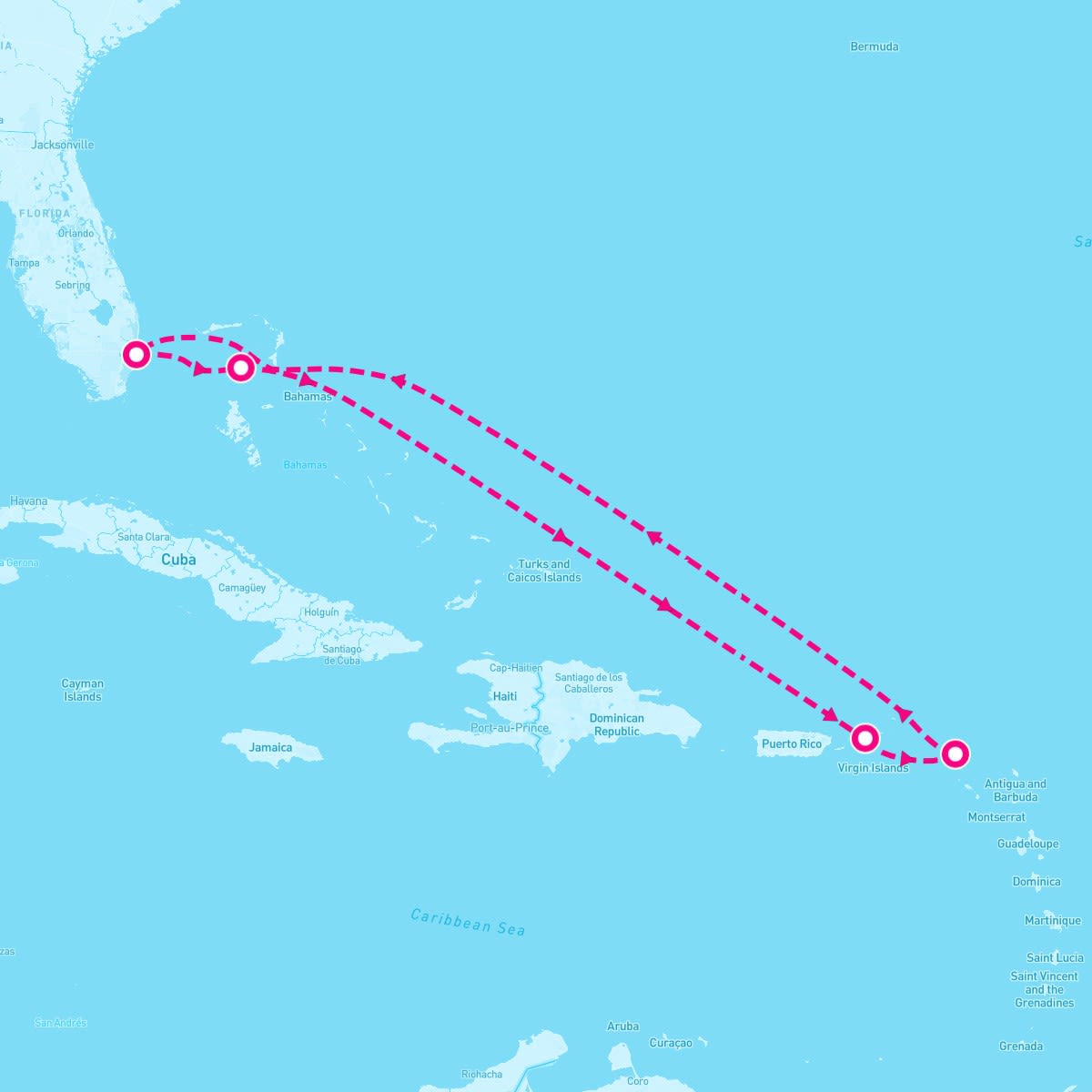 This route includes fort-lauderdale-florida, perfect-day-at-coco-cay-bahamas, charlotte-amalie-st-thomas, philipsburg-st-maarten.