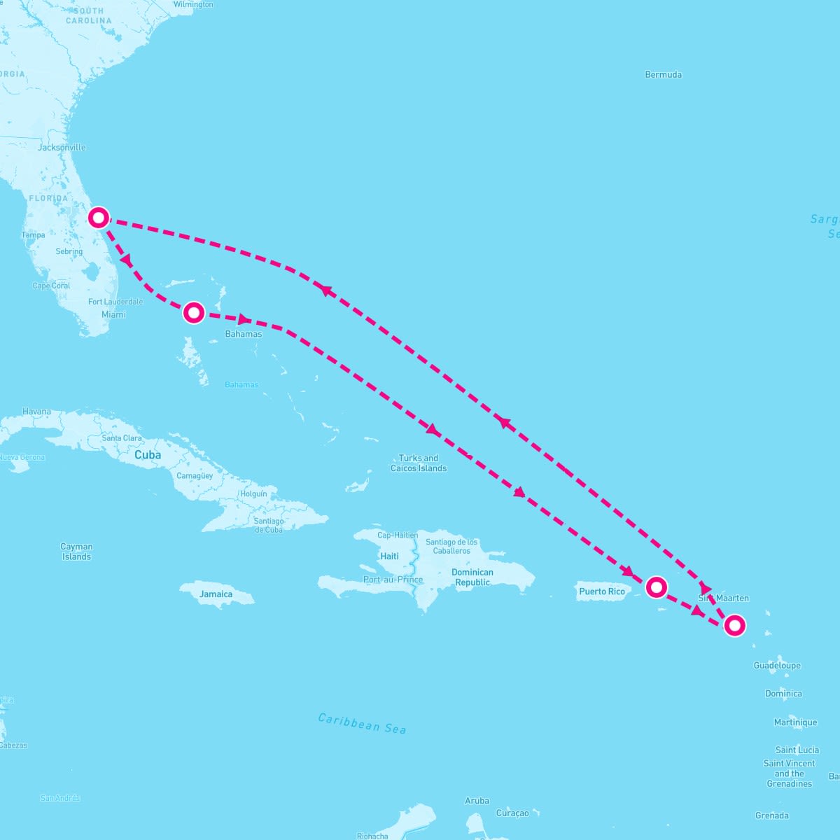 The Star of the Seas sails on May 24, 2026 for a 7 Night Eastern Caribbean & Perfect Day (Port Canaveral Roundtrip). The ship will depart the port of Port Canaveral, Florida at 4:30 PM and will return to the port of Port Canaveral, Florida on May 31st at 6:00 AM. During the 8-day journey, the Star of the Seas will visit 3 additional ports and will spend 3 days at sea.