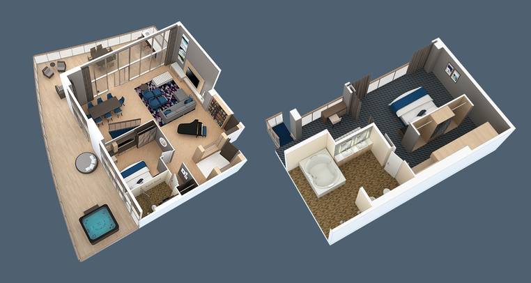 Cabin 18200 includes: Expansive two-floor suite with ample space for everyone, Most luxurious suite on the Royal Caribbean fleet, Star Class amenities.