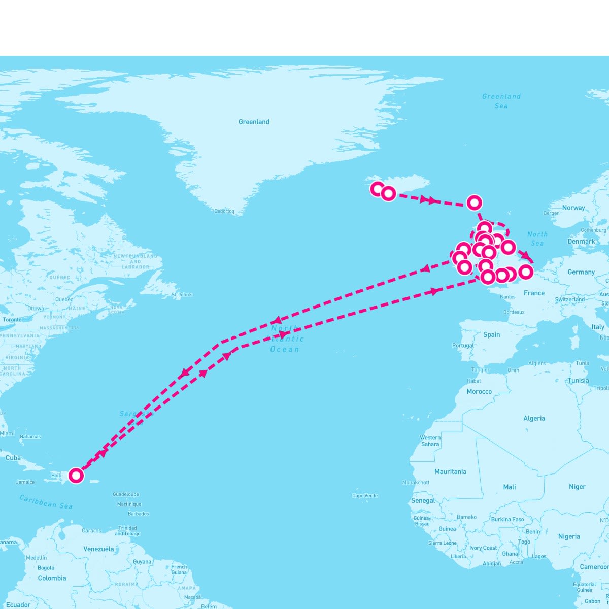 This route includes dover-london-england, portland-weymouth-england-uk, cobh-cork-ireland, fishguard, douglas-isle-of-man, rothesay-isle-of-bute-scotland, glasgow-scotland, belfast-ireland, oban-scotland, leith-edinburgh-scotland, newcastle-england, cowes-isle-of-wight-u-k, fowey-england, view-eclipse-at-sea, galway-ireland, killybegs-ireland, ullapool-scotland, torshavn-faroe-islands, heimaey-westman-islands-iceland, reykjavik-iceland.