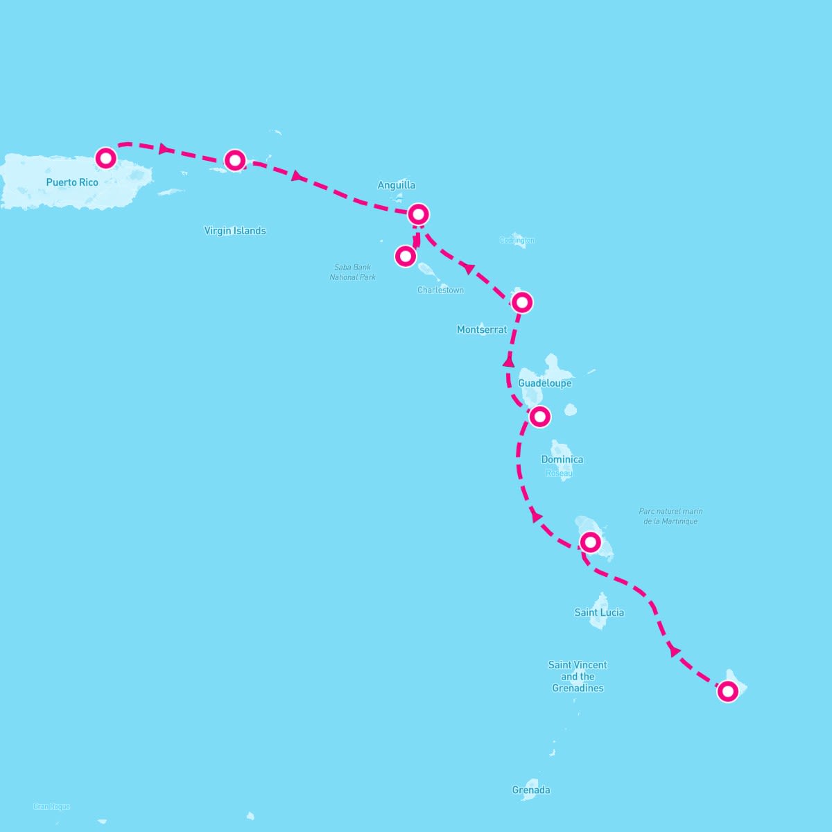 The SeaDream II sails on January 25, 2026 for a 7 Night Windward & Leeward Islands (San Juan To Bridgetown). The ship will depart the port of San Juan, Puerto Rico at N/A and will return to the port of Bridgetown, Barbados on Feb 1st at N/A. During the 9-day journey, the SeaDream II will visit 7 additional ports and will spend 0 days at sea.