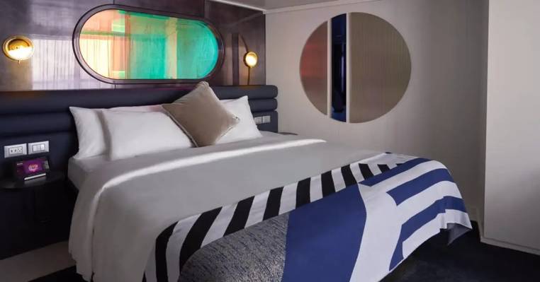 The Seriously Suite, with the cabin category code SAB, is the epitome of luxury on a Virgin Cruise. This cabin is perfect for guests who want to indulge in every aspect of their vacation. With a minimum occupancy of 2 and a maximum occupancy of 4, it is ideal for couples or small families. The cabin size of 352 square feet provides ample space for guests to relax and unwind in style. The Seriously Suite is the base Rockstar level cabin, featuring a fully-stocked, full-size bar and a unique Peek-a-Boo shower that adds a playful touch to the luxurious design. Guests can also enjoy their favorite music on the record player provided, creating a personalized soundtrack for their stay. The cabin is equipped with a king size bed, ensuring a comfortable and restful night's sleep. The Seriously Suite truly offers a one-of-a-kind experience for guests looking for the ultimate luxury on their Virgin Cruise.