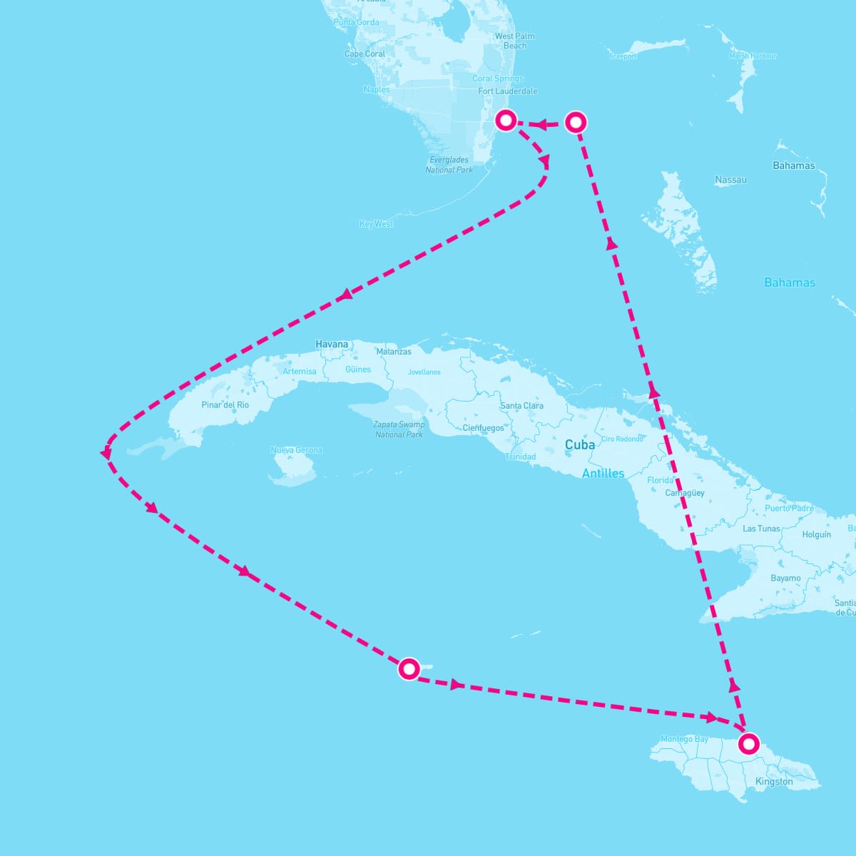 The April 15, 2027 cruise on the Valiant Lady departs from Miami, Florida. On this 7 Night Cayman Isles & Jamaican Miles (Miami Roundtrip) sailing, the ship will visit a total of 4 cruise port destinations, including its departure port. The Valiant Lady sets sail on Thursday, Apr 15th and returns on Thursday, Apr 22nd.